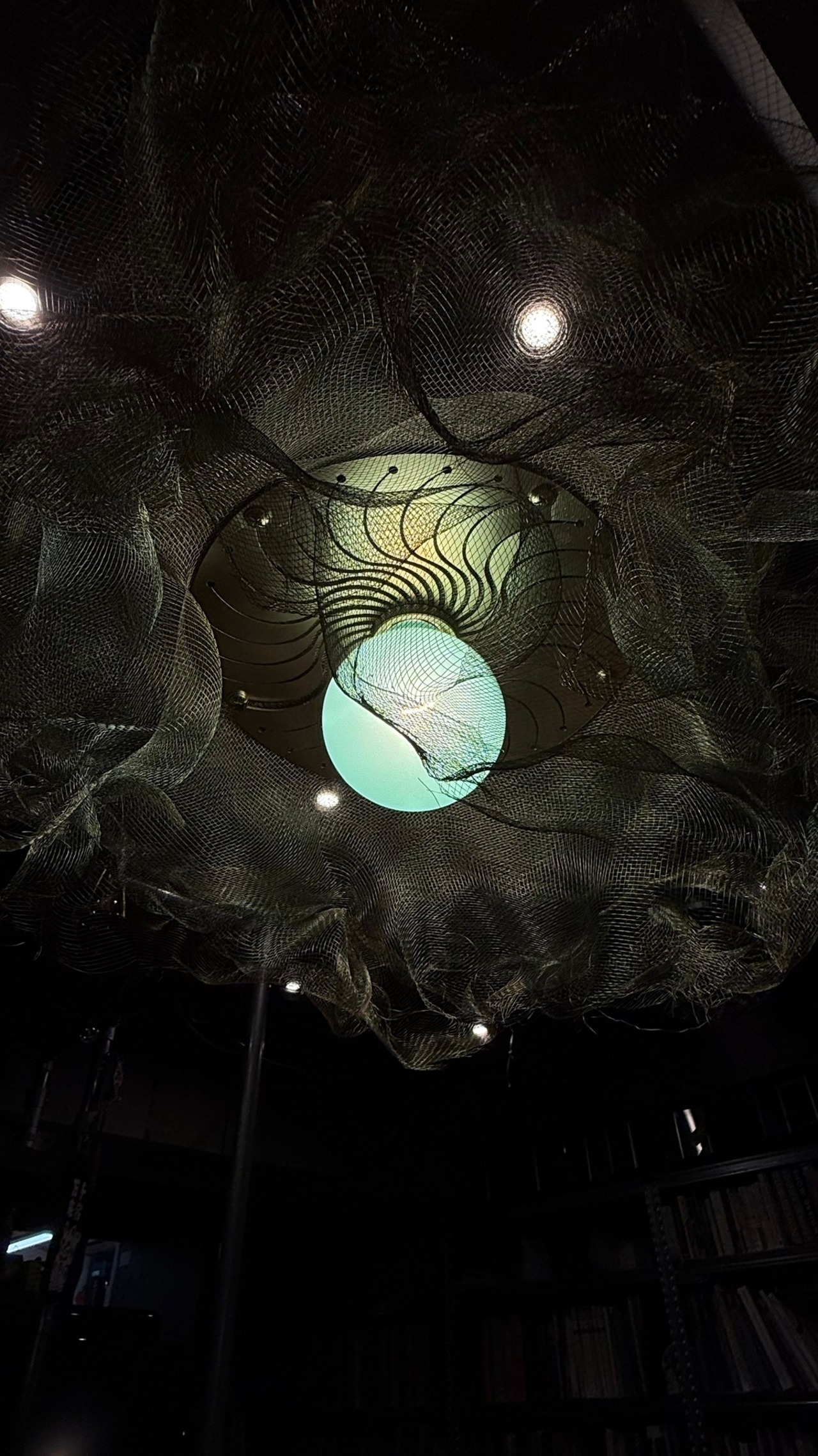ワイヤーメッシュ(ゴールド色)を使用したペンダント照明になります。